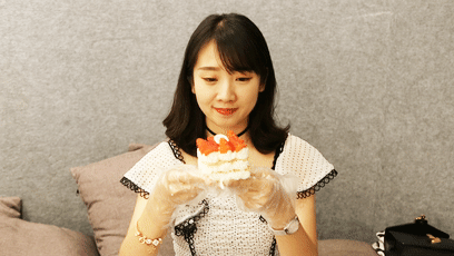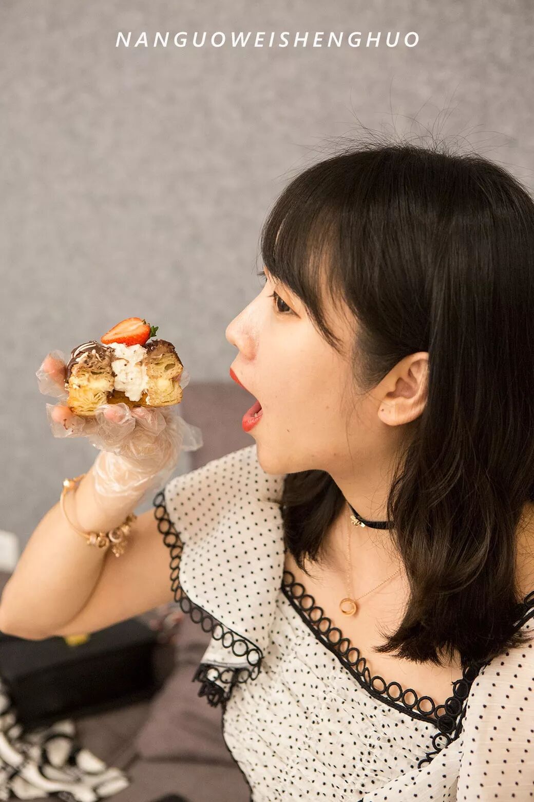 女助手把手教你羊角甜甜圈的正确吃法: