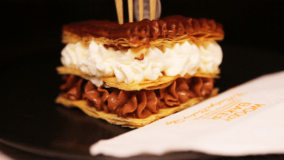 「拿破仑蛋糕」:法文名为Mille-feuille,即有一千层酥皮的意思,所以它又被称为千层酥,是法国经典甜品。拿破仑蛋糕跟拿破仑没有关系,说法之一是由于它的英文名Napoleon,是Napolitain误传而来的,至今依然被写作Napoleon而已。