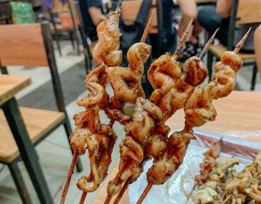店里的烤黄喉和烤猪肚最吸引南哥!
