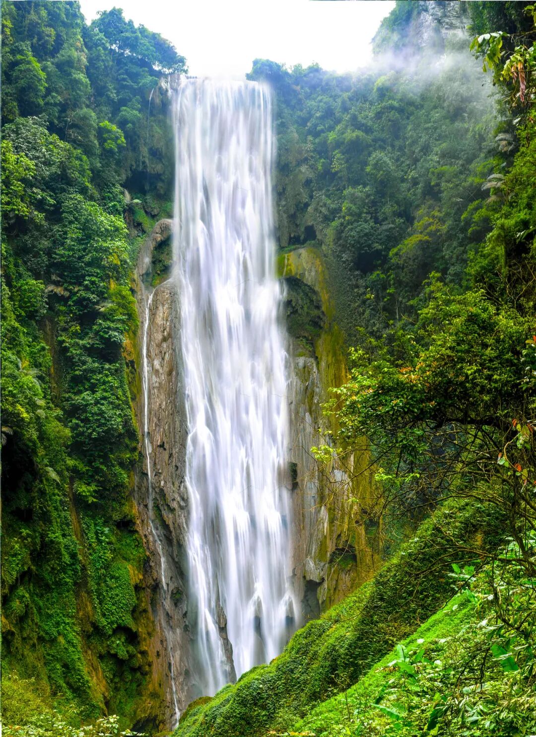 倾泻而下的瀑布,溅起的水花,就好像是在你面前铺上了一层帘布,穿过去能够看到不一样的景象,来这里散心难道不是夏日的最佳选择么?