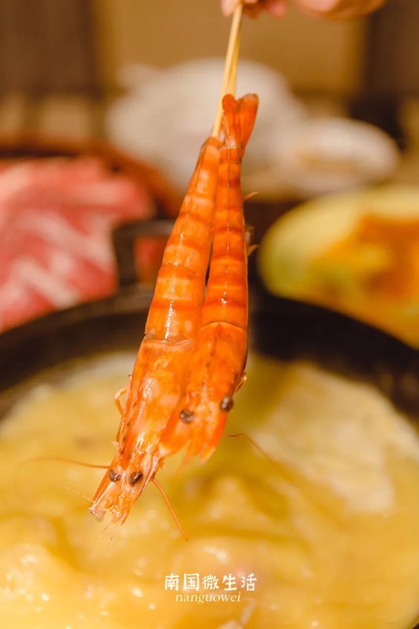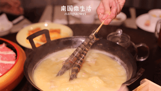 超大的斑节虾是女助的最爱,经过黄金汤的洗礼,更弹鲜甜,鲜味加倍。