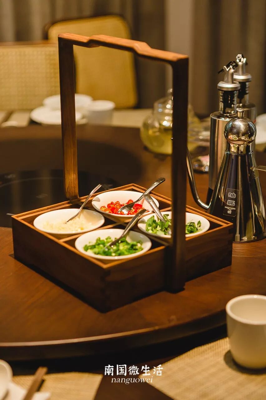 如果想口味重一些,这里还有精致的配料篮子,蒜米、辣椒、香菜、香葱任你搭配