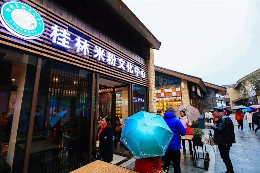 到桂林,怎么能不吃桂林米粉呢。景区内的桂林米粉文化中心,有手工榨粉的传统器具,到今天仍然坚持桂林米粉的古法烹饪,一碗粉的出炉需要14道工序、200小时的发酵。