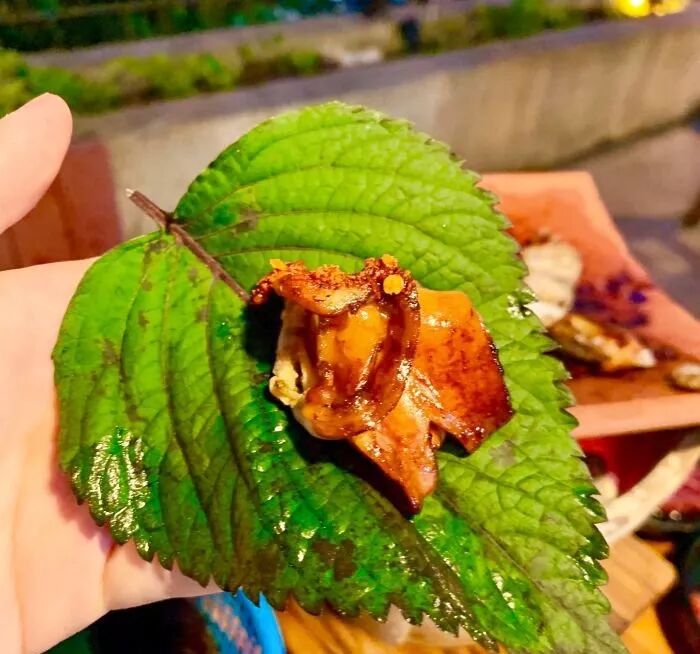 这家店可以用紫苏包着肉