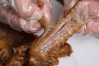 别看鸭翅瘦瘦的,在爽滑Q弹的鸭皮下,还藏着一大块紧实的肉!