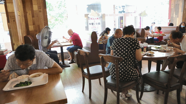 一群在附近单位的上班族说,“吾鹏安铺鸡”已经是他们的定点食堂,想要吃好吃、健康又吃不腻的家常菜,就来他家。每个人点一份套餐,青菜、鸡杂汤配上一份鸡肉,虽然简单,但是营养又美味。