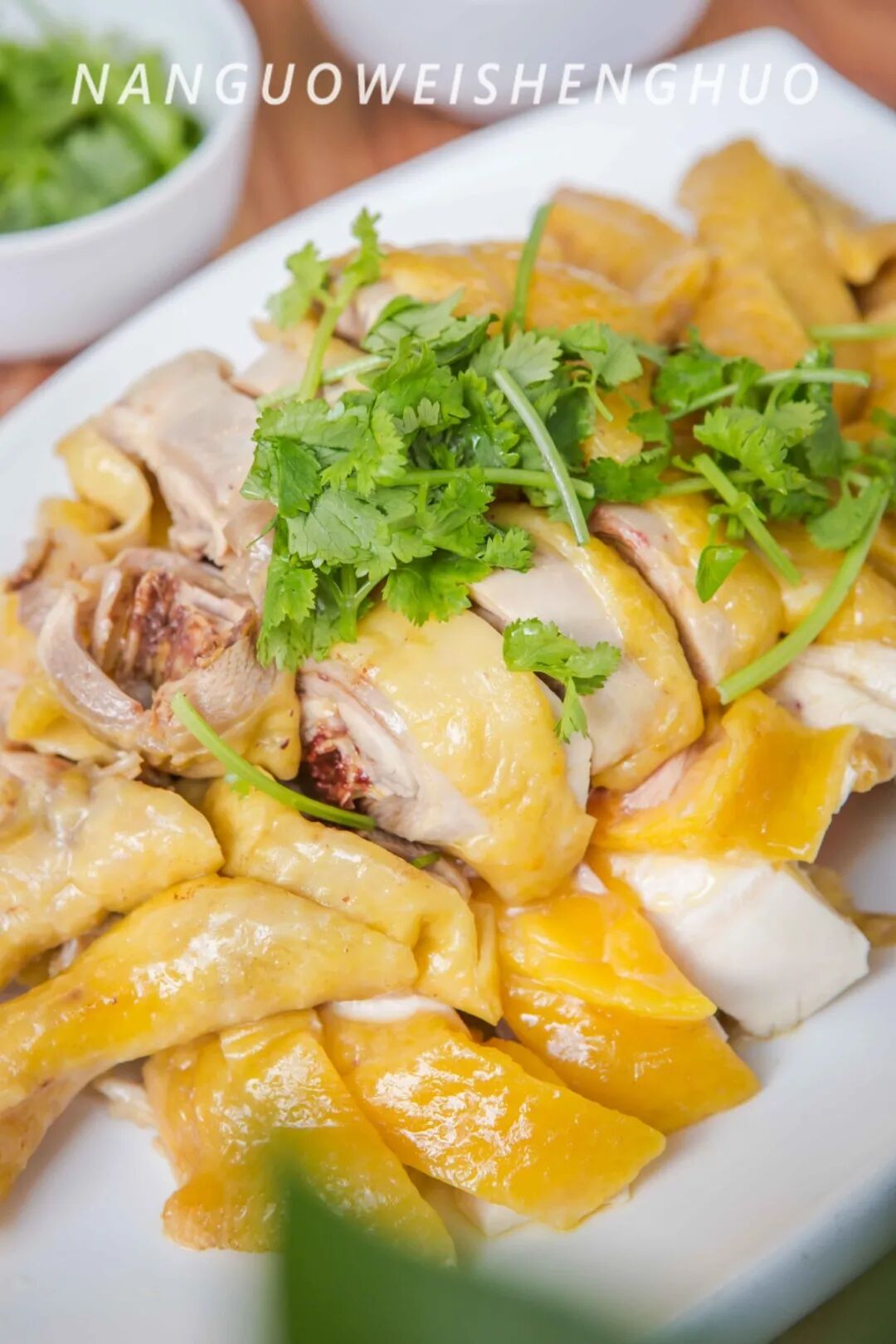 采用传统手法烹饪,吃的就是鸡肉原汁原味。因为鸡本身的品质足够优秀,只需在锅里简单加一点盐和姜片,先经过“三浸三提”,再来一场接近40分钟的“高汤浴”和“冰水浴”的双重洗礼,这样才能保证出锅后的鸡肉更加紧致。