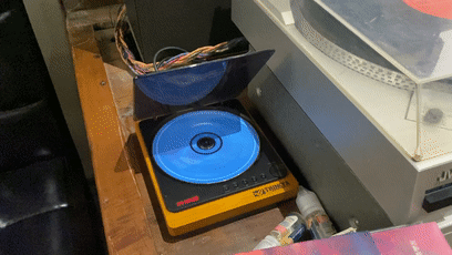 老式的CD机正在播放着张学友的歌曲,黄色的老旧音响十分具有年代感。