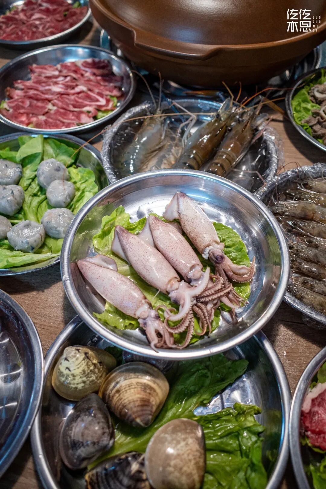 火锅的菜品是拿着小推车到冰柜前自选的,种类丰富,还很新鲜。海鲜、雪花牛肉、贝类、菌菇......喜欢的统统都拿上,有种去超市买买买的感觉!
