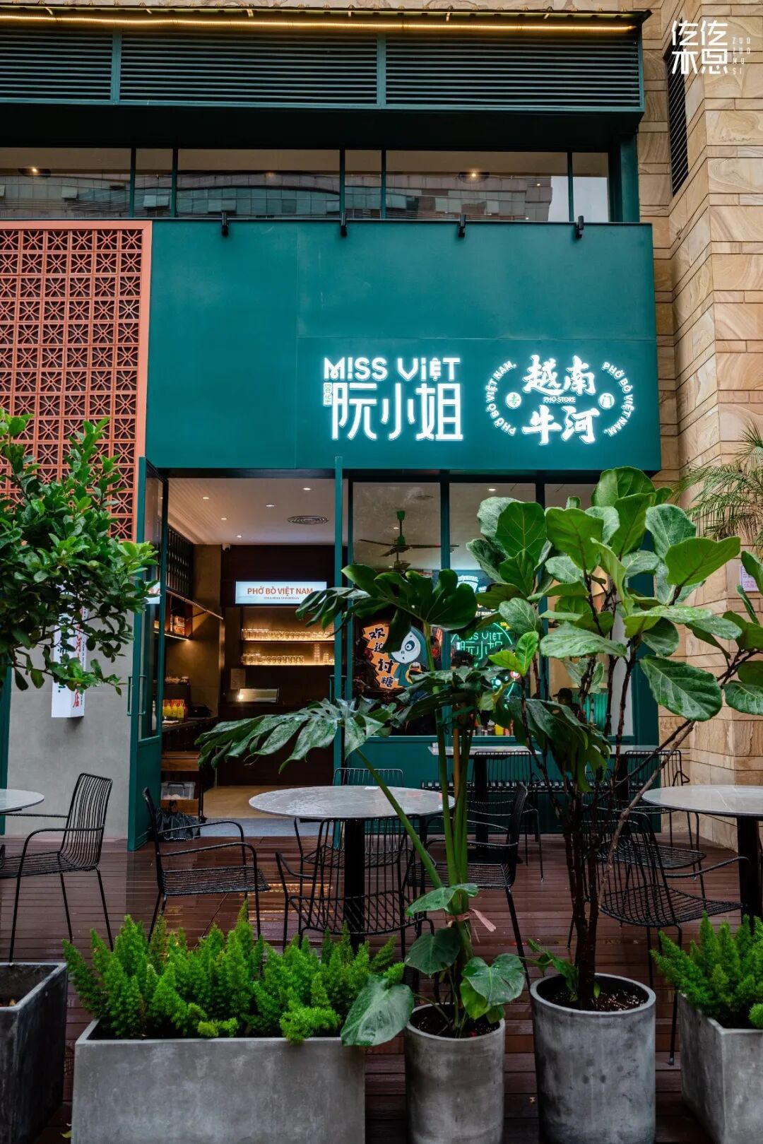 这家自带露天小花园的小店,门口被绿植紧紧地包围着,外表看上去挺像一家小资的下午茶店,实际上是一家越南牛河专卖店。