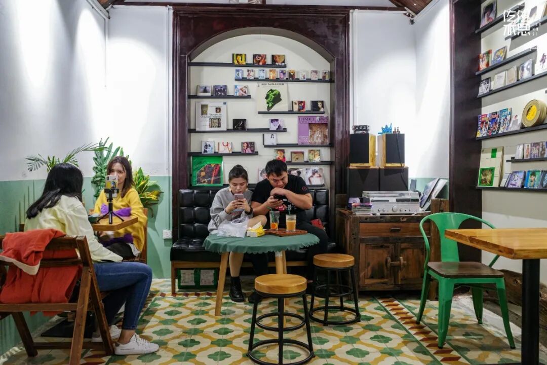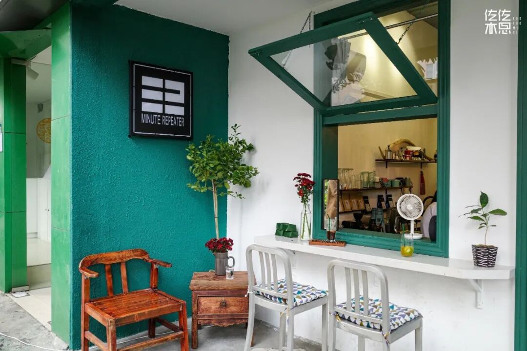 这家复古风咖啡小店,位于民族大道边上,穿着一身墨绿色的外衣,隐没在道路旁的绿荫中,不仔细看很难发现它的存在。
