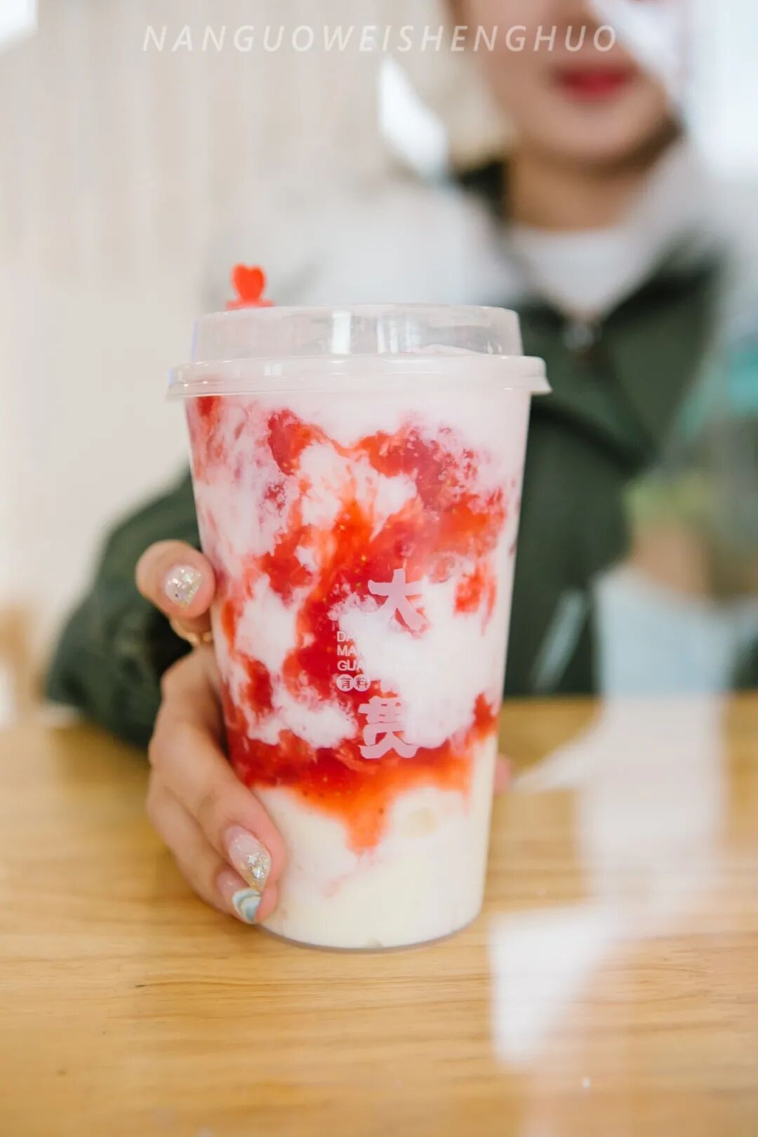 现煮的Q弹麻薯,软糯而不粘牙;鲜榨草莓果肉,酸酸甜甜;新鲜牧场直供的牛乳,醇厚香浓。