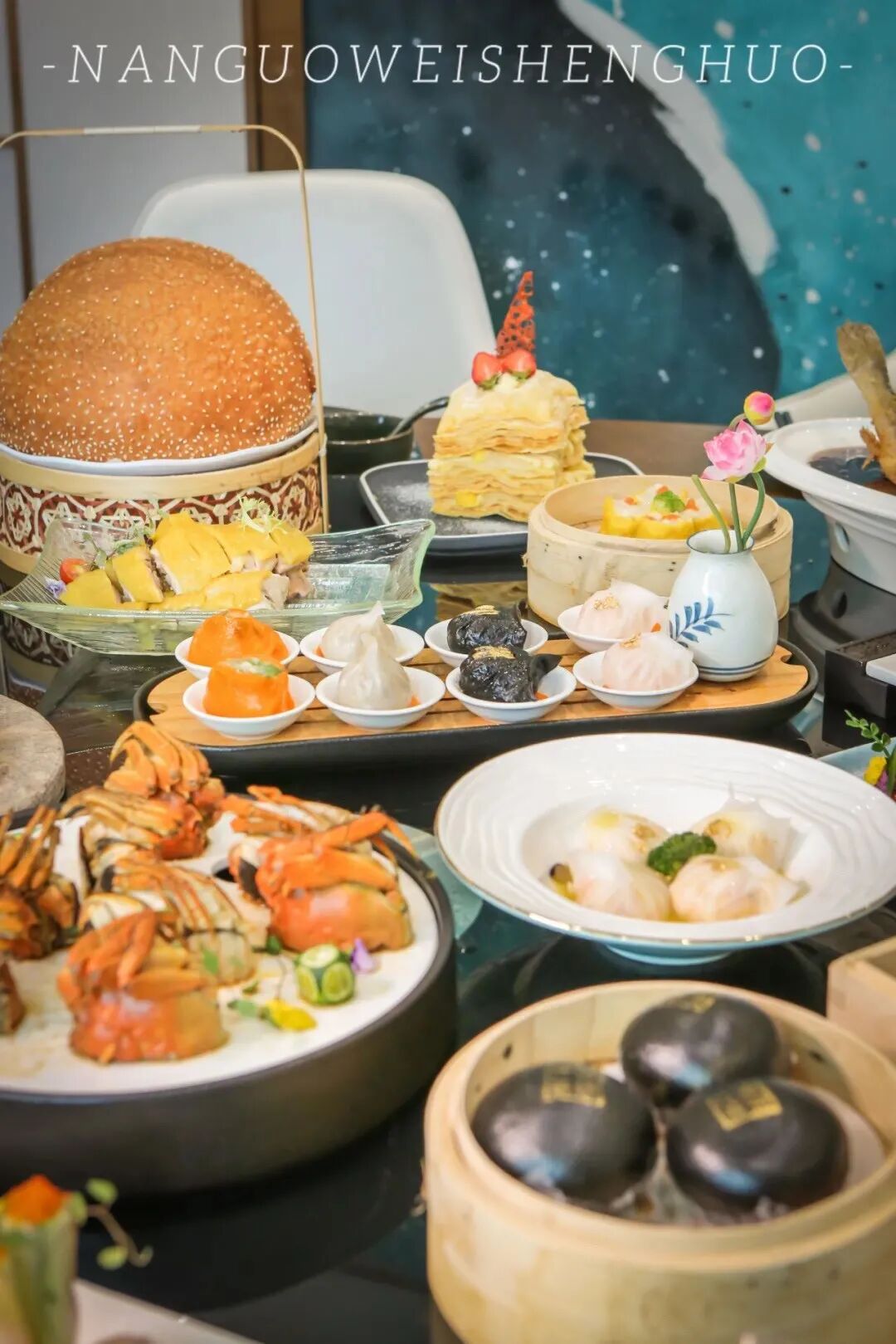 特色美食:黑松露金汤虾饺、鹏举咸煎饼、墨鱼汁脆皮肠、日式青芥三文鱼挞、黑金流沙包、椰皇奶冻、醉蟹