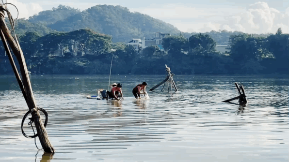 妈妈最近带我到三元塔河边看人洗衣