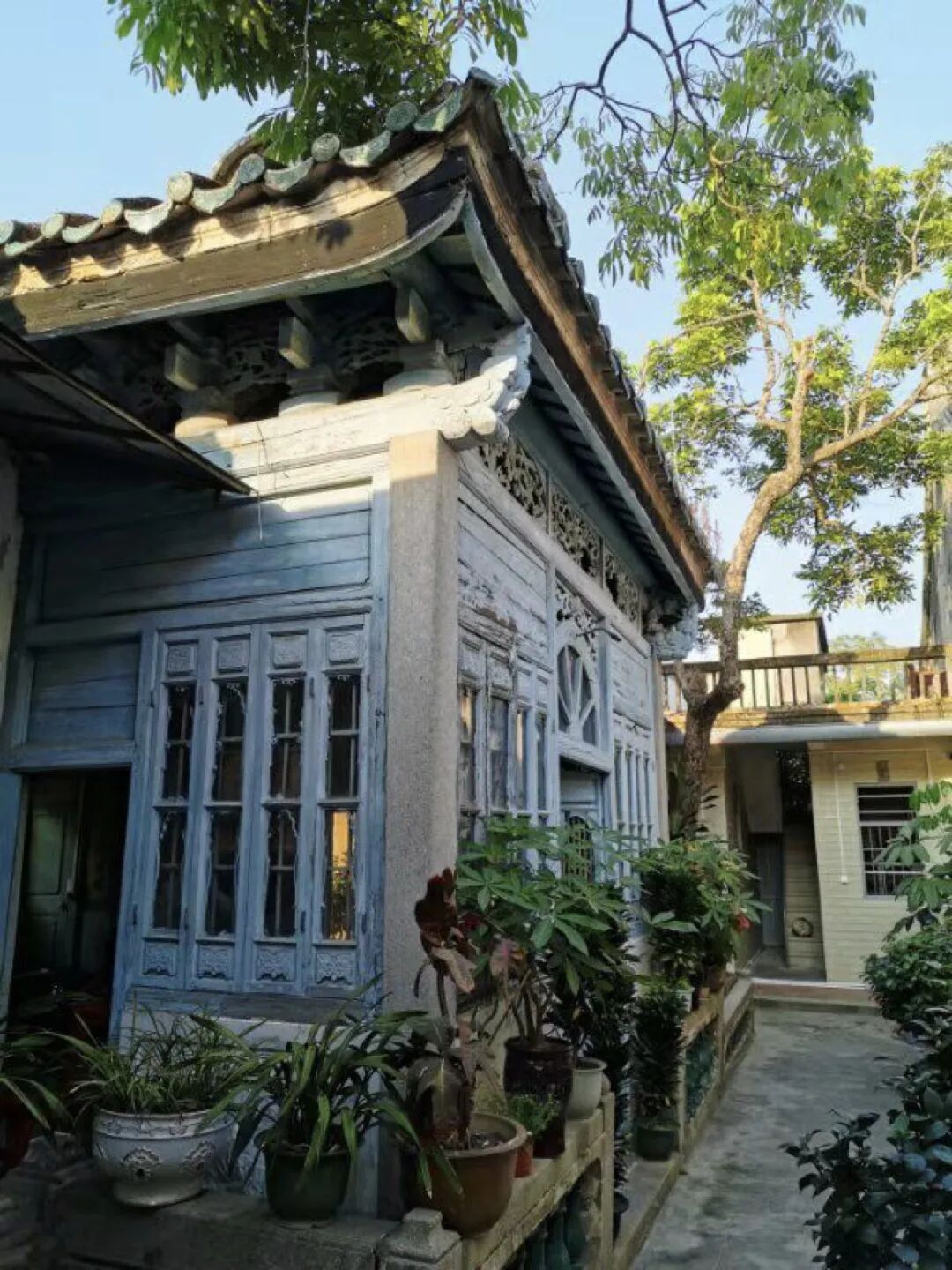 椰子小时候在这里生活过一段时间,长大后到深圳、广州读大学,又定居广州工作。但是他时不时地有回到家乡,看望家里的长辈,偶尔也邀请朋友到祖宅做客。我也曾经在他的带领下,到樟林吃过老羊仔猪脚饭后,来到这座老宅喝一泡功夫茶。当时书斋门板上的书法、墙上的花砖、宅子里的凉亭,都让我觉得很吃惊,平时和椰子交谈是知道他来自书香门第,但不知道他家祖宅原来这么儒雅。