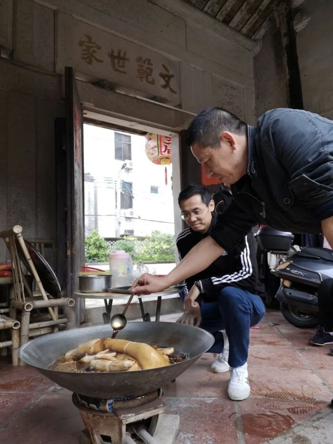 这个仿佛是给快生活按下暂停键的春节,也让他有更多的时间去观察乡村的生活。他观摩了邻居强哥卤鹅的全过程。这是一种潮汕传统的烹饪方法,将整只狮头鹅放在大鼎里面,以老卤、冰糖、桂皮、豆蔻、八角、南姜、蒜等卤料制而成,这是祭祀神灵的时候必备供品。