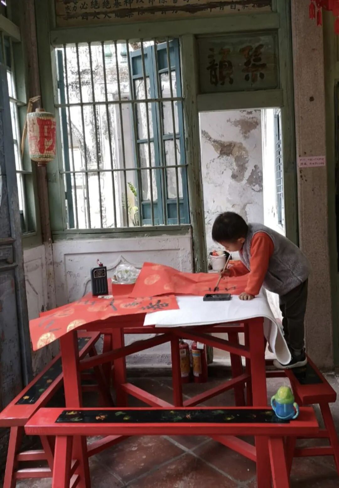 椰子的儿子小文今年三岁,他在广州出生和长大,今年已经上幼儿园了。这次和爸爸回老宅居住,对于周围的一切也充满了好奇,屋前屋后跑来来去,和爸爸一起在老宅写字、涂鸦、做手工,甚至还能套上舞狮玩一玩。