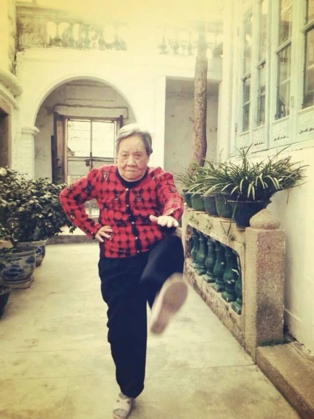 椰子也不时会想起自己的奶奶生前常在院子练习六通拳,这套拳法让年轻时常年卧床的奶奶脱胎换骨,安度晚年。但是他只记得了其中的几招,他把奶奶最擅长的“金鸡独立”教给儿子,在不能出门的时光里,儿子练得格外欢畅。