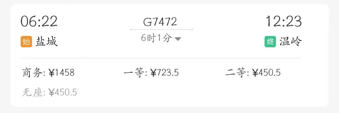 G7472/69盐城—温岭 |