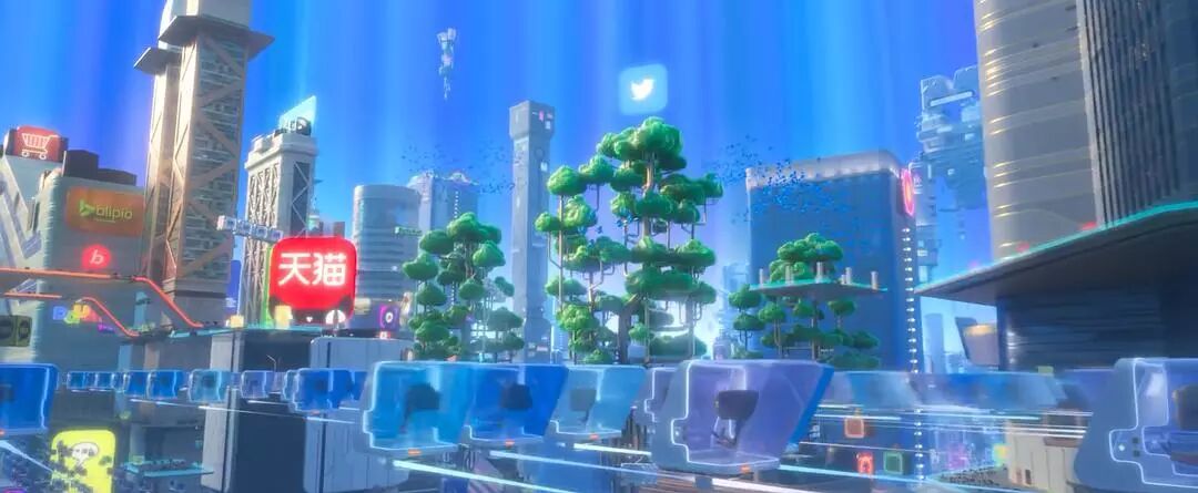 特别说明,当你看到拉尔夫俯瞰下方发现了蓝色的小鸟飞过,请注意那不是迅雷(我看这么多遍听到很多普通观众都说迅雷),那是推特Twitter,既然谢耳朵在一节目上说过“微博是中国的推特”,那我就可以把推特说成是“外国人用的微博”。