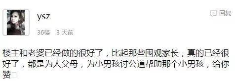 楼主的太太能主动上前帮助受困中国小孩,并主动与老师沟通,得到了大家一致好评!