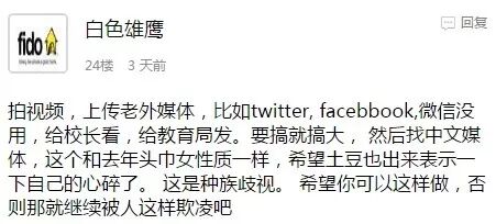 学校要加强监管,从严处理。而且为什么这么巧正好是5个白人小孩围攻一个中国小孩,这在我们眼中就是种族歧视+欺凌。
