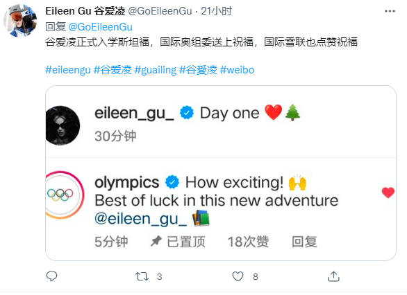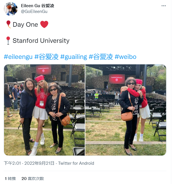 在今年初的北京冬奥会上,谷爱凌可谓收获满满,不收收获了金牌和亿万广告费,而且名声远扬。作为咱们加州老乡的谷爱凌,在4月底飞回美国后,光环加身,马不停蹄地参加了诸多社会名流的大Party,甚至参加电影节走红毯,风光无限。近日,斯坦福大学举行开学礼,新校友谷爱凌参加开学礼的时候,还带上她最爱的妈妈和姥姥,并在个人推特上发文:第一天,斯坦福大学:谷爱凌的这条推文下面,还有国际奥委会官方给送上祝福,谷爱凌还特意截屏转发这条祝福:开学礼当天,谷爱凌还与斯坦福大学校长合影,也拍下了自己入驻学校宿舍的照片:据介绍,谷爱凌妈妈谷燕也是毕业于斯坦福大学,谷爱凌的爷爷亦是从斯坦福大学毕业的。而谷爱凌的姥姥(谷爱凌从小称呼她奶奶)冯国珍,也是一名顶级学霸!谷爱凌还透露过她的高考成绩,据说她在美国SAT高考中考了1580分(总分1600分)。你看,人家一大家子都是学霸,看来学霸也是遗传的。9月19日,已退休的《环球时报》前总编辑胡锡进发了这么一条微博:中国没一些人说得那么好,……既来之则安之……。原文如下:当小编看到这则微博时,曾一度误以为胡总编的微博被盗号了。更有网友不明其里,问老胡你的意思是“本不喜欢这里?”的确,不得不服,老胡在“进退之间”拿捏得非常到位,与“反美是工作,赴美是生活”的司马老先生有相似的价值观。以下是老胡在接受南方人物周刊访谈时候的报道,您看一下是不是太贴切了:更不用提老胡的宝贝女儿了,生于1988年的胡小姐,据说高考当年失利,复读后进入国际关系学院,后来进入汉办,前往美国俄勒冈的孔子学院当了老师。曾被追问急了,胡锡进才承认说女儿在美国孔子学院“当了一年老师”,网上公开资料显示是“两年”。后来,老胡女儿继承了父亲的衣钵,进了环球时报,看她的视频访谈,也能发现她的思想和价值观与父亲也是一脉相承了:
