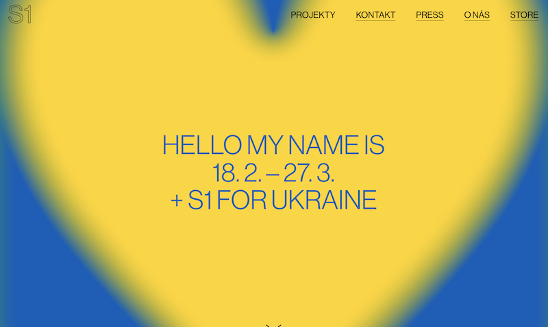 S1画廊的首页,变成蓝、黄两色,在展览标题上,增加了“S1 FOR UKRAINE”的字样。窗户上也悬挂了蓝色和黄色的纱帘。