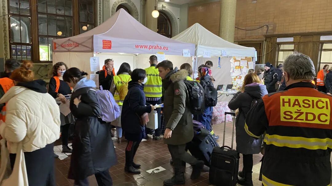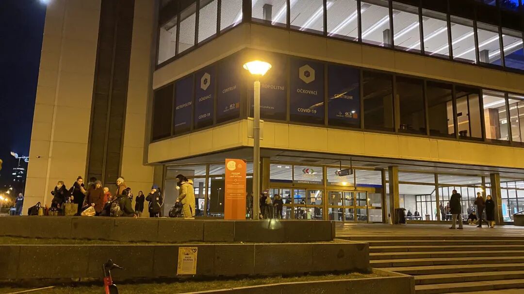 布拉格四区的会议中心,分别承担了难民登记、临时休息中转的职能。我们去的时候,看到门外聚集着一些拖家带口的乌克兰人,大厅里面拦出了蛇形通道,没几个人排队,新闻上说,有的时候,这里人满为患超负荷运转,有的时候很空。主要看他们到来的频率。来人的入口在3号门,门口的警察把我们放进去找里面的工作人员。