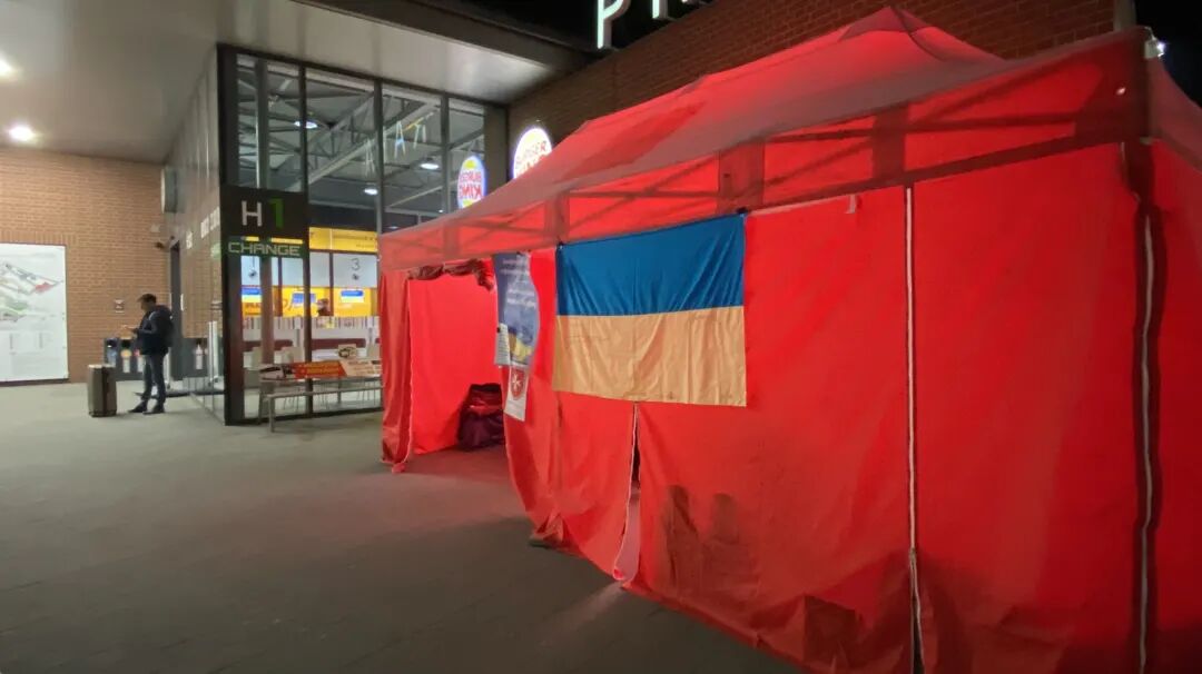 然后,我们去了长途汽车站,这里,没什么抵达和等待的乌克兰人。户外有一间红色的棚子,里面有四、五位工作人员,候命服务。