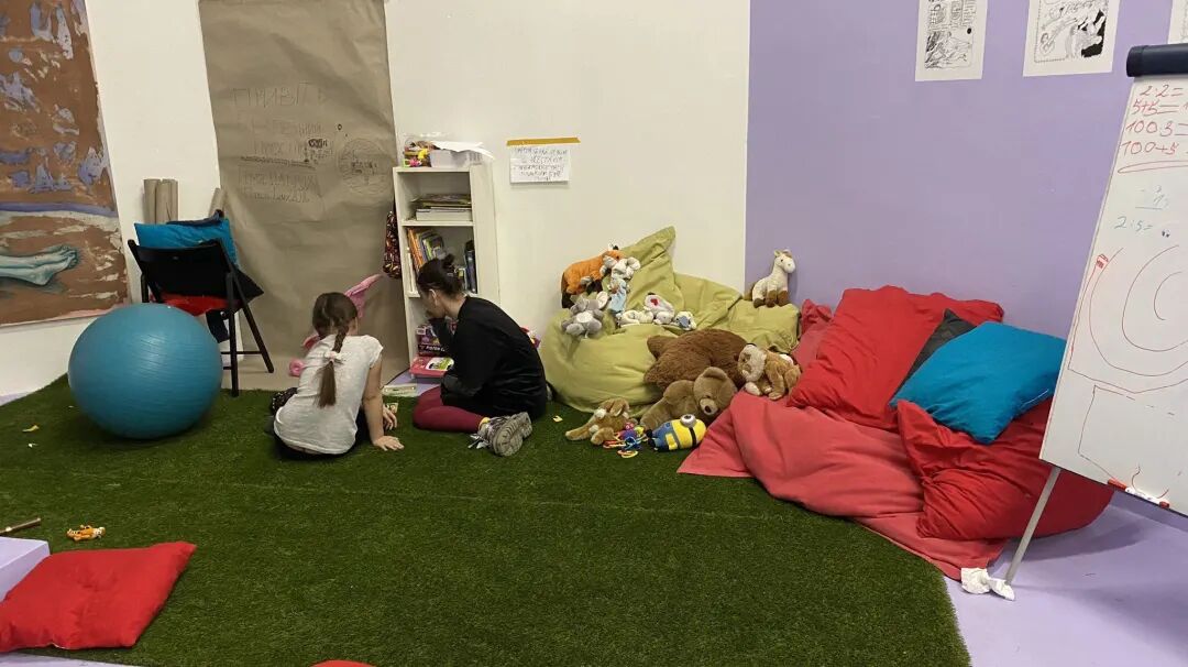 今天画廊来了三户乌克兰人。白天有儿童心理医生在场。