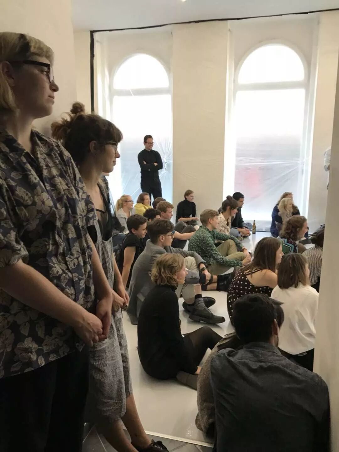 前来参加开幕的人们,年轻人居多,席地而坐。