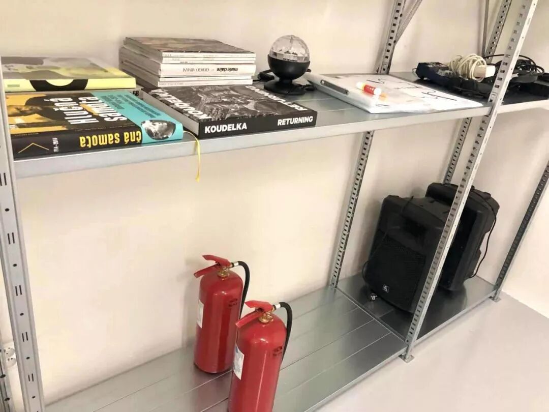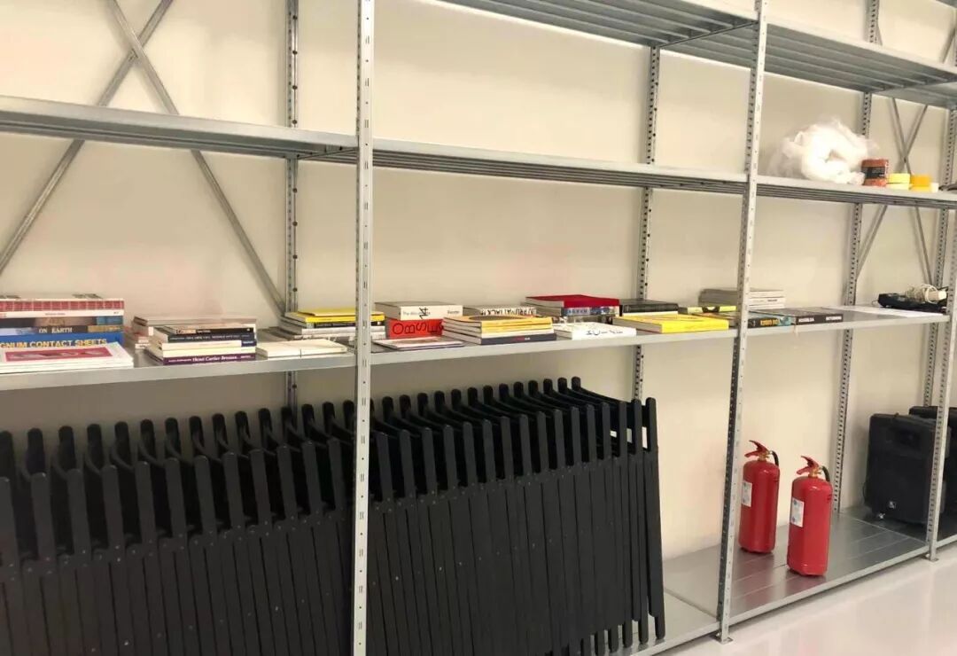 有一天徐在装了一袋沉重的画册,让我们帮助带过去。画册平铺在货架上。还有椅子,我们曾经很发愁,如果没有地下仓库,如何把椅子藏起来。还有灭火器、音箱、电源线……