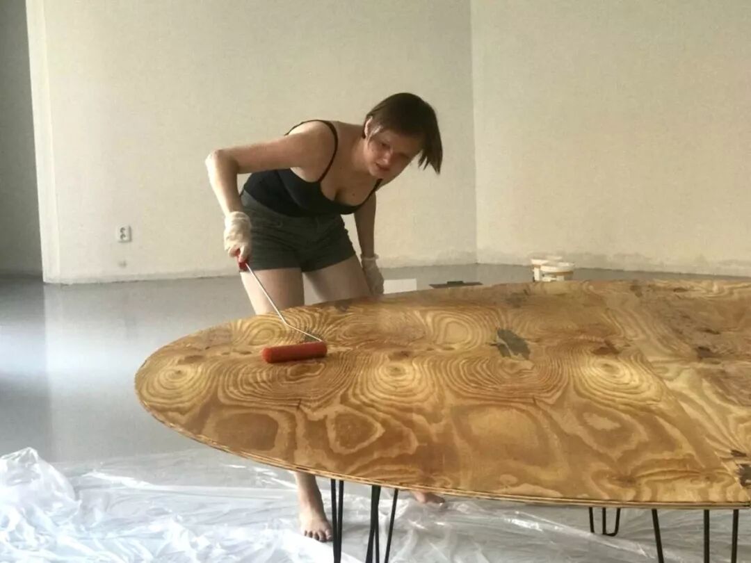 学生们跑了几个家居店,空手而归,不是不会锯出圆桌面,是没有能做出二米直径圆形的大板。不知道他们跑到哪里弄来两张粗糙的半圆木板,买来钢片,把两块板子合在一起加固,再打磨桌面,刷了几遍清漆。男孩子一遍遍刷,女孩子也一遍遍刷。他们很为选来的桌子腿而自豪,那是查姆博兄弟的学长设计的艺术品。