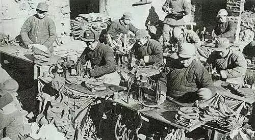八路军机关干部、战士自己动手缝制棉衣、棉被