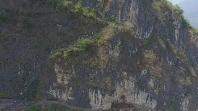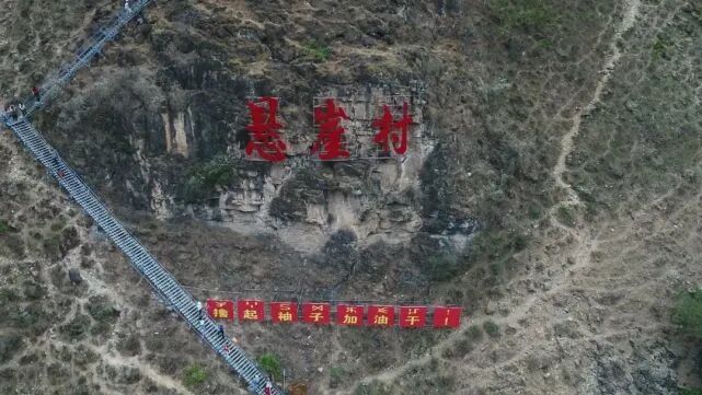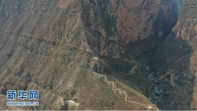 2020年3月23日,“悬崖村”天梯(无人机照片)。新华社记者 薛晨 摄