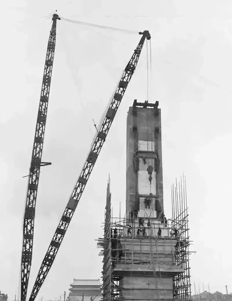 64年前的5月1日,正值“五一”国际劳动节。首都五十万人民齐聚天安门广场,共同见证人民英雄纪念碑揭幕仪式。工人、农民、士兵、学生、知识分子和工商业者的代表登上纪念碑的月台,向在革命事业中牺牲的英雄们敬献花圈。如今,半个多世纪过去,历经岁月更迭、风雨侵蚀,这座凝聚着先辈血与魂、记录着中华民族荣与辱的建筑依旧熠熠生辉。它见证着祖国日益走向富强,亲睹着广大人民群众过上了自由幸福的生活。瞻仰之余,可有谁曾想过,这座看似构造简单、石材普通的纪念碑从奠基到建成花了将近9年时间。把指针拨回到1949年9月30日,尽管当天会议行程安排得很紧凑,但毛泽东同志还是亲自为纪念碑执锹铲土,并宣读碑文。![]()