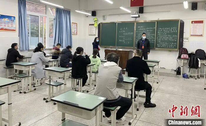 资料图:2021年11月28日,江西南昌,考生们在查看考场安排表 中新社记者 刘力鑫 摄
