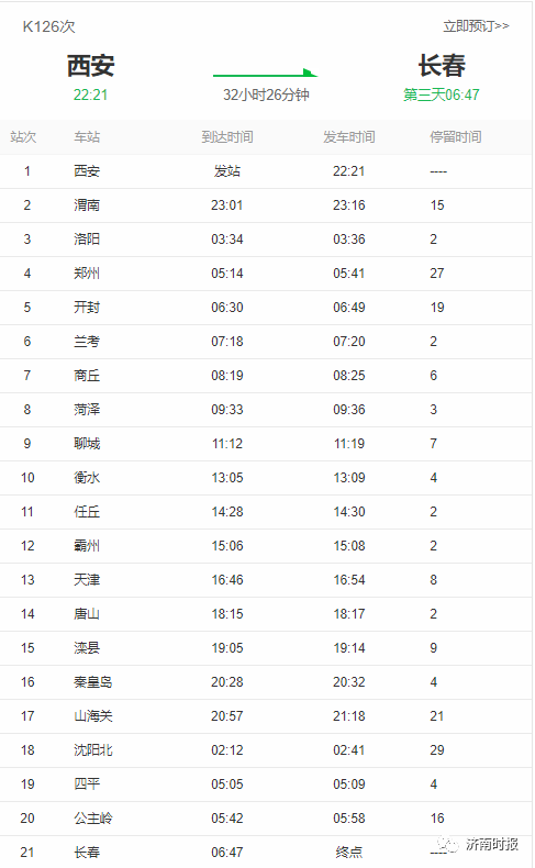 K126次列车始发站西安,终点站长春