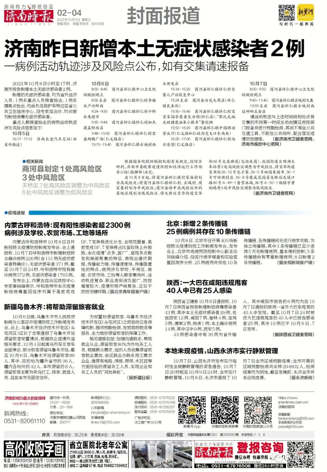 10月8日0时至17时,济南市新增2例本土无症状感染者,均系省外返济人员,1例在集中隔离点检出,1例在重点人群筛查中检出(点此查看此前报道),现将重点人群筛查检出的病例活动轨迹涉及风险点信息公布如下: