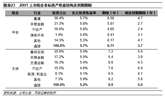 1)太保:信用评级高,整体信用风险管控良好。截至20H1占比22.5%(较上年末+1.6pct),占比提升、非标资产全部具备外部信用评级(较上年末+1.6pct),其中AAA级占比达94.7%(较上年末+0.3pct),AA+级及以上占比达99.9%(较上年末持平);高级免增信的主体融资占51.8%(较上年末+0.2pct),其他项目均有担保或抵质押等增信措施。