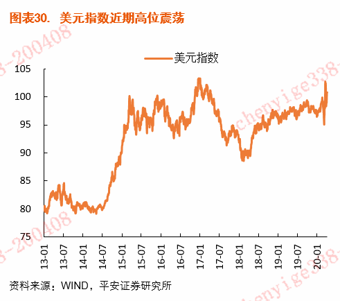 在美国经济陷入衰退的背景下,美联储继续宽松的常规政策空间极其有限,财政也难以无限制加码,这决定了只能依靠疫情的消退才能恢复经济常态化。另外,还需要关注美国页岩油企业及部分中小企业的违约破产风险。在全球避险情绪高企的背景下,二季度美元指数仍将维持高位震荡,区间或在98-102之间。