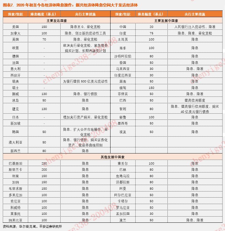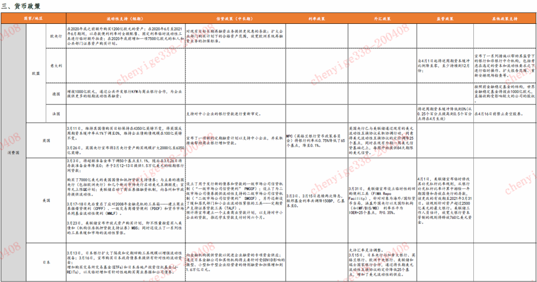 在全球经济下行压力剧增的背景下,各大央行货币宽松政策大幅加码。其中,美联储3月两次紧急降息已将基准利率调低至零附近,同时开展了无上限的QE计划;欧央行也加大了QE规模;其余大多央行纷纷采取跟随降息的宽松货币政策。汇率方面,美元指数“一枝独秀”,其余货币则相对弱势,美元兑人民币则维持在7.0附近窄幅震荡。