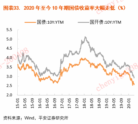 年内货币政策将继续维持宽松以配合财政。其一,疫情冲击之下宏观经济面临的下行压力,需要相对宽松的货币政策给予支持。央行一方面通过短期流动性与中长期信贷政策的支持,帮助企业度过疫情冲击的难关活下去,另一方面则进一步引导贷款利率下行,降低企业融资成本,助力生产与投资的迅速恢复。其二,3.27政治局会议已明确提出要提高财政赤字率、扩大专项债的规模以及发行特别国债,专项债与特别国债的发行都可能起到回收市场流动性、推高长端利率的效果;因此,货币政策应当维持宽松,以降低未来财政发债的成本,同时缓解债券供给大幅增加对金融市场流动性的冲击。其三,存款基准利率作为潜在的政策选择,下调较为审慎。市场此前对存款端的降息期待较高,此举确实能够起到降低银行负债端成本,激励银行信贷投放意愿的作用。不过,央行刘国强副行长在4月3日的国新办发布会上表示,一方面央行将通过提供低成本资金,加大对银行的支持力度,缓解银行利差缩小的压力;另一方面表示,存款利率是中国利率体系的压舱石,是潜在的政策工具,但其使用需要综合评估疫情的冲击程度、物价的变化以及对汇率的影响。由于疫情在海外蔓延的影响尚有不确定,而当前CPI水平显著高于一年期存款利率,若进一步下调存款基准利率,会降低居民的福利水平。因此,是否调整存款基准利率将会比较审慎,政策宽松的优先顺序还是降准、下调OMO-MLF操作的利率。