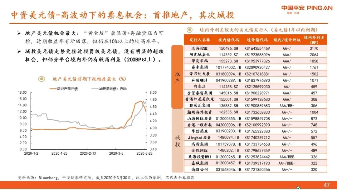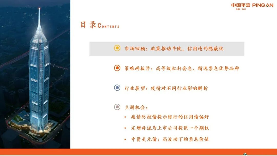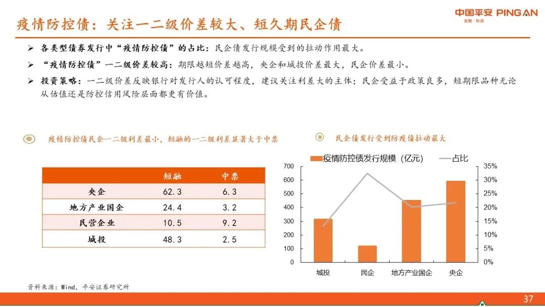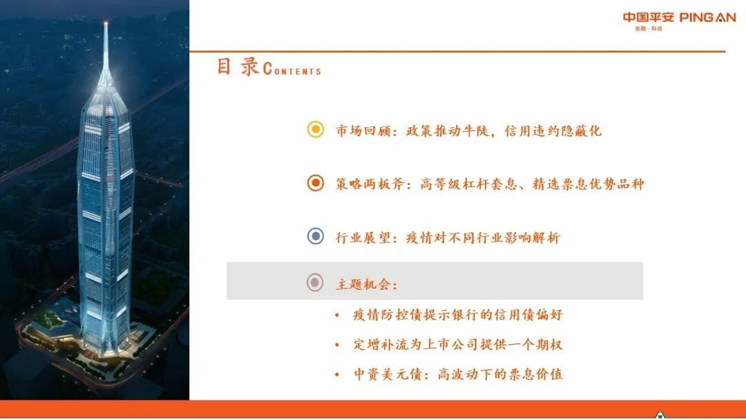 主题机会:1)疫情防控债提示银行风险偏好,建议结合个券基本面,二级市场参与一二级价差大、隐含评级高于AA-的民企短期标的;2)关注上市发债企业的再融资计划,在政策支持的行业中挑选现金流缓释较多的主体的短债;3)中资美元债带来高波动下的票息机会,稳定的外汇负债成本是重要资本,行业层面首推地产债,部分城投美元债境内外仍有200BP以上利差。