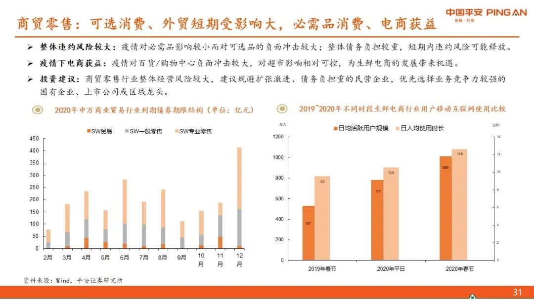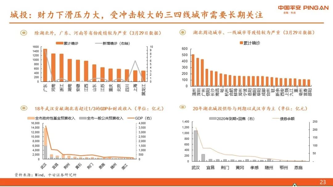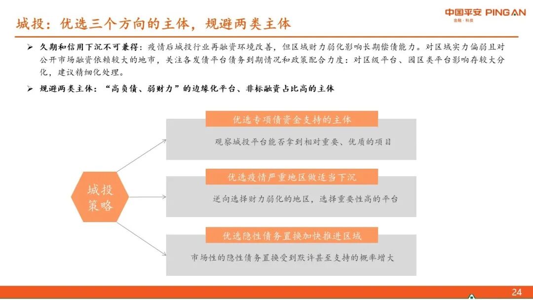 行业策略:1)城投:整体受益,难掩分化,优选三类主体,规避两类平台。受益于逆周期政策加码,城投重要性提高,但财政受损加剧分化。挖掘专项债受益主体、疫情防控债主体和隐性债务置换推进较快的主体,规避“高负债、弱财力”的边缘化平台、非标融资占比高的主体。2)地产:行业短期偿债压力尚可,关注政策边际变化,结合自身风险偏好选好白名单,关注中资美元债。3)医药:贴合疫情,选择细分龙头或研发实力强,盈利优势企业;4)商贸零售:优选竞争力较强的国企、上市公司或区域龙头,规避扩张激进、债务负担重的民企。5)石化:布局基本面好的精细化工行业,规避靠近上游且风险较大的民营地炼企业。6)汽车:疫情推迟行业复苏时间,推荐头部整车厂。7)交运:短期直面冲击,补贴不会缺席,除个别风险暴露主体和盈利能力弱的路产,大部分主体可择机参与。