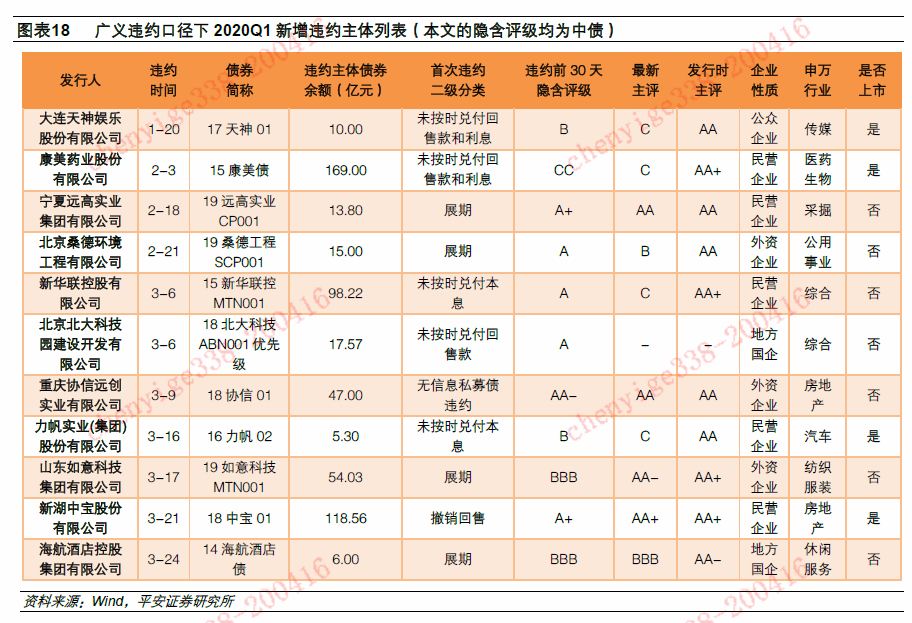 3.3广义违约口径看20Q1违约:新增违约主体基本是民企和假国企