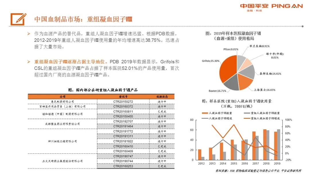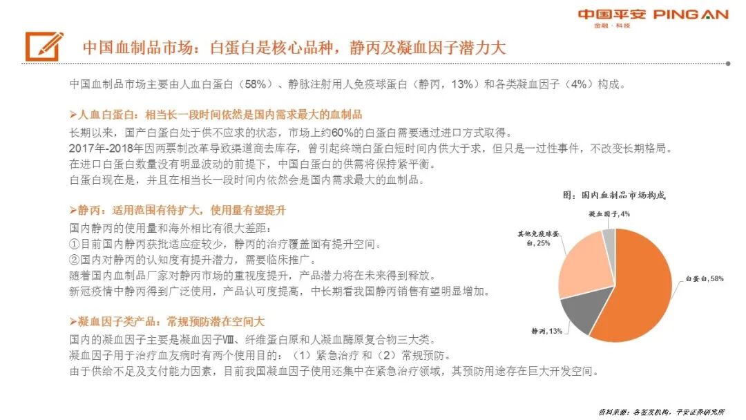 中国血制品市场:规模持续增长,白蛋白是核心品种,静丙及凝血因子潜力大。