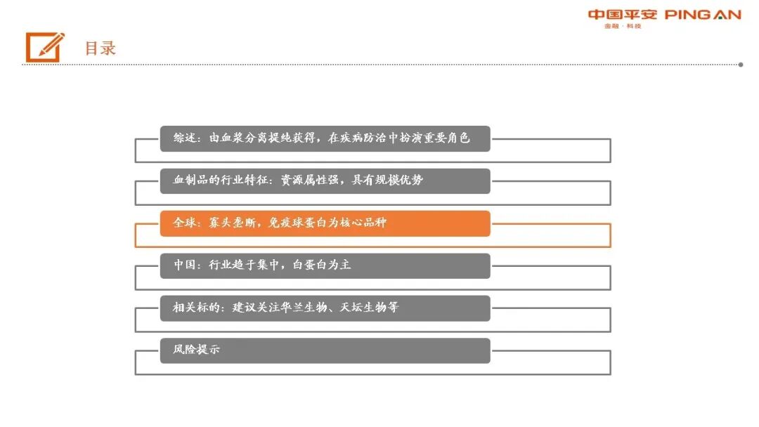 全球血制品市场:持续稳健增长,寡头垄断,静丙为核心品种,主导市场供应。