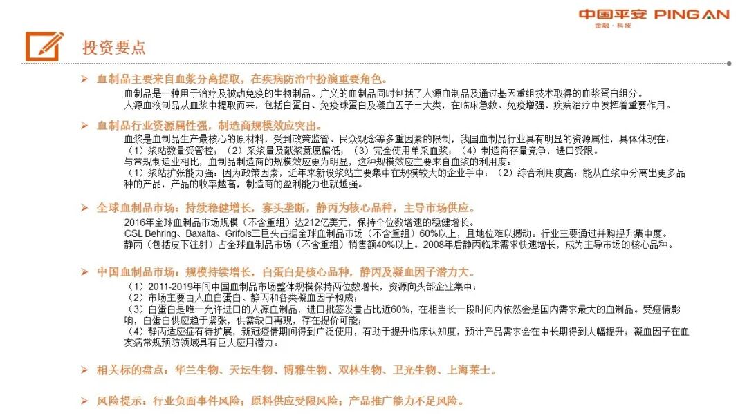 相关标的盘点:华兰生物、天坛生物、博雅生物、双林生物、卫光生物、上海莱士。